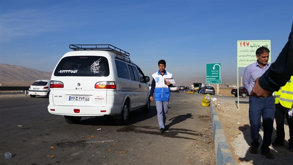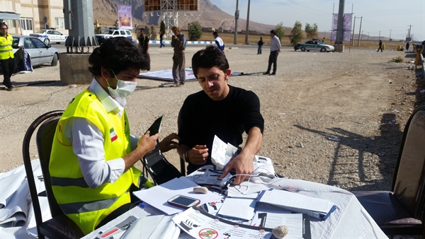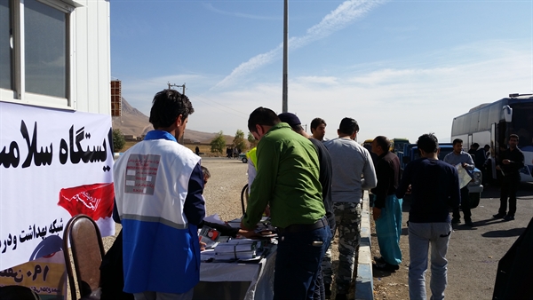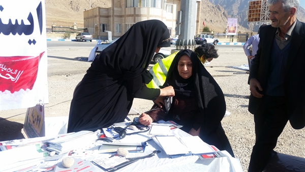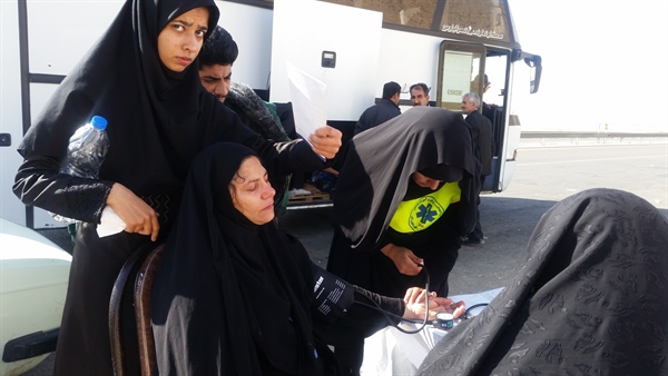 فعالیت ایستگاه سلامت شبکه بهداشت و درمان چرداول مستقر در پلیس راه شباب در خدمت رسانی به زائرین حسینی